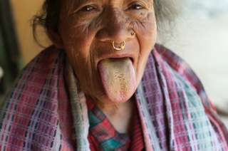 Après avoir passé un moment avec les villageoises, une vieille dame, Siddha Kumavi nous a dit qu’elle avait mal à la gorge. Cette dame fumait beaucoup et avait une langue noire villeuse.
