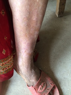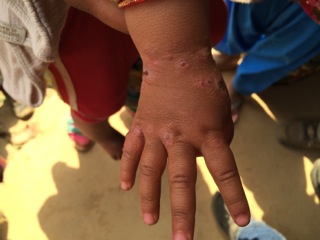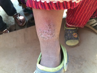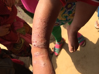 Après quelques jours de marche, nous avons visité le dispensaire de TOKARPUR où SaraswatiKantel s’est présenté pour nous montrer ses plaques blanches et rouges qui la grattait beaucoup. Ses plaques se trouvaient sur l’ensemble du corps.