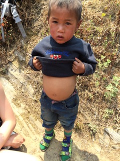 Notamment un petit garçon Kalmal Thapa Magar, qui nous semblait avoir soit des problèmes de nutrition soit des problèmes cardiaques. En effet cet enfant, avait un énorme abdomen alors qu’il ne mangeait pas beaucoup.