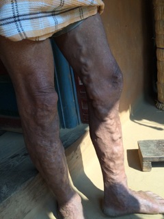 Le père de notre guide, chez qui nous avons dormi une nuit, souffrait de varices très importantes au niveau des deux jambes. Cet homme qui travaillait énormément avait mal après une journée de travail.