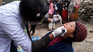 Malgré les difficultés rencontrées pour l’approvisionnement en carburant – voir l’article de Paris Match : http://www.parismatch.com/Actu/International/Huit-mois-apres-le-seisme-Le-Nepal-toujours-sous-les-ruines-882945 – nous avons pu nous rendre au VDC de Simjung avec les deux équipes médicales népalaises : Le Nepal Eye Hospital (ophtalmologie) et le Kantipur Dental Hospital (dentaire).
