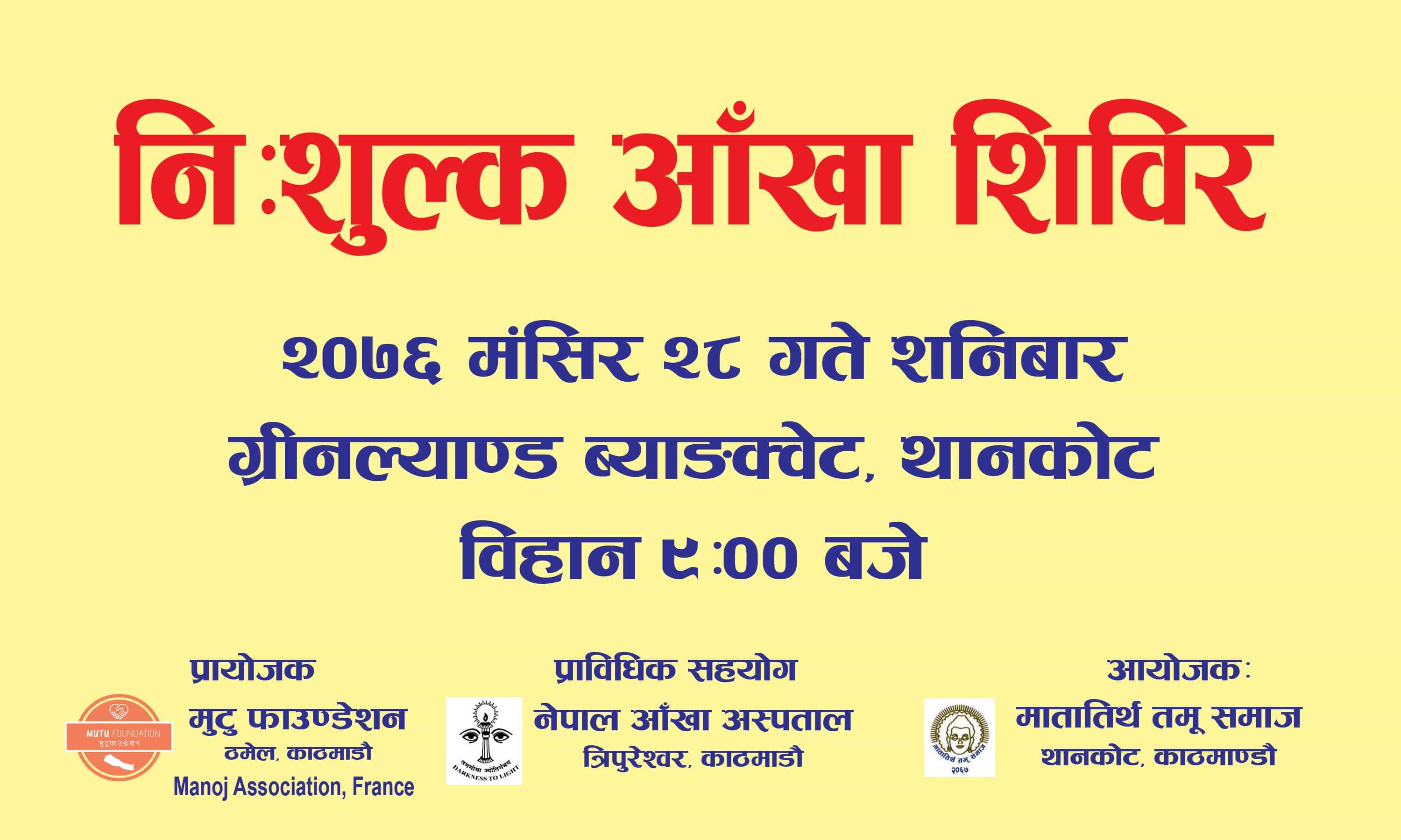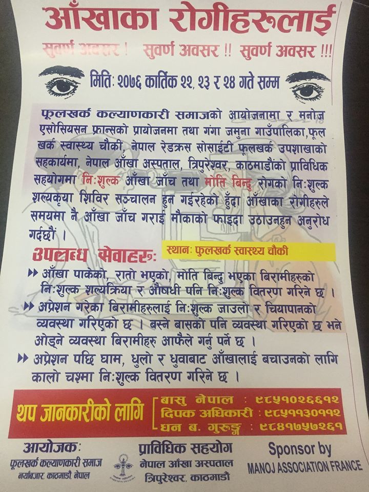 Camp de dépistage de la vue à Kathmandu avec le Nepal Eye Hospital lors de l’assemblée générale des Gurung de Kathmandu. 115 consultations. Sponsor MANOJ.