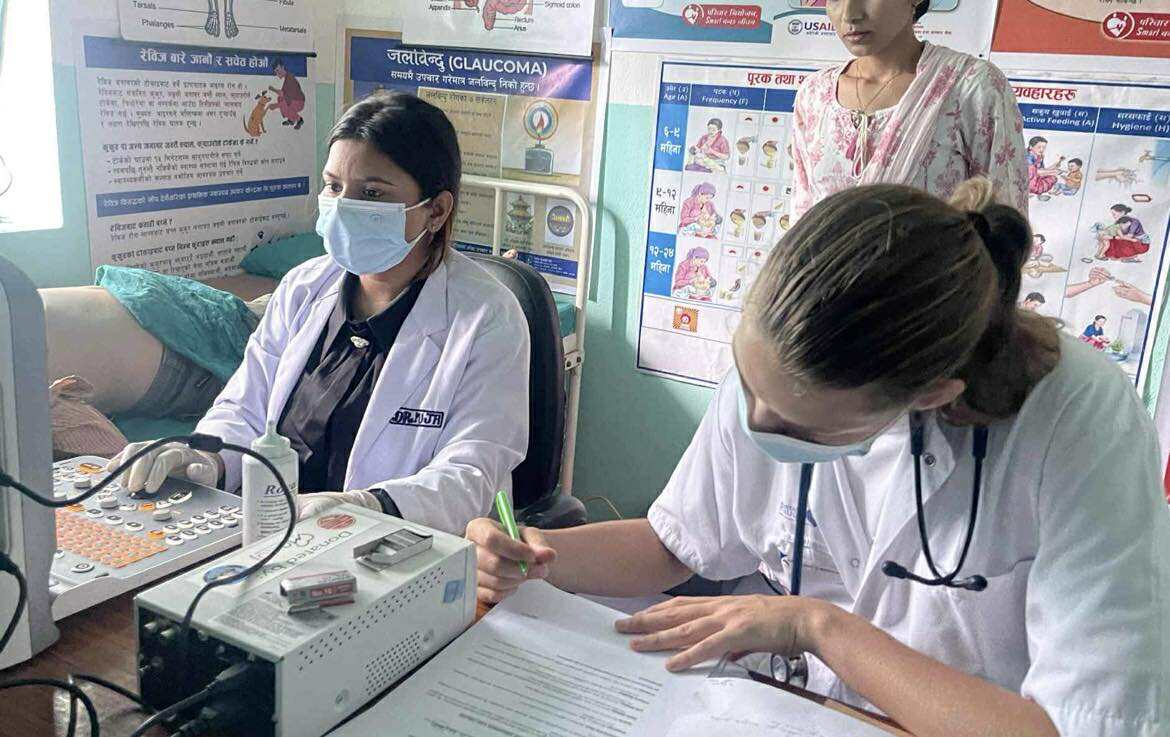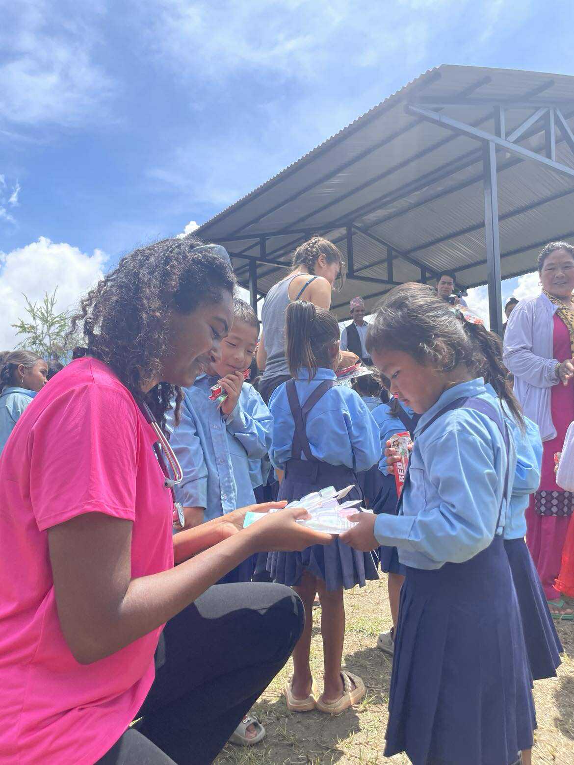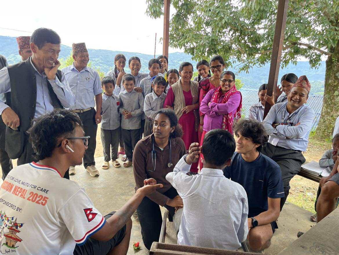 Nous avons ensuite poursuivi avec le fameux Trek Médical. À travers rizières et forêts népalaises, nous avons rejoint plusieurs villages pour y proposer notre aide. Nouveauté cette année : nous avions prévu un budget dédié à l’achat de matériel d’hygiène dentaire et de fournitures scolaires, que nous avons pu distribuer dans les écoles où nous intervenions. Nous avons dépisté de nombreux problèmes ophtalmologiques et locomoteurs chez les écoliers.