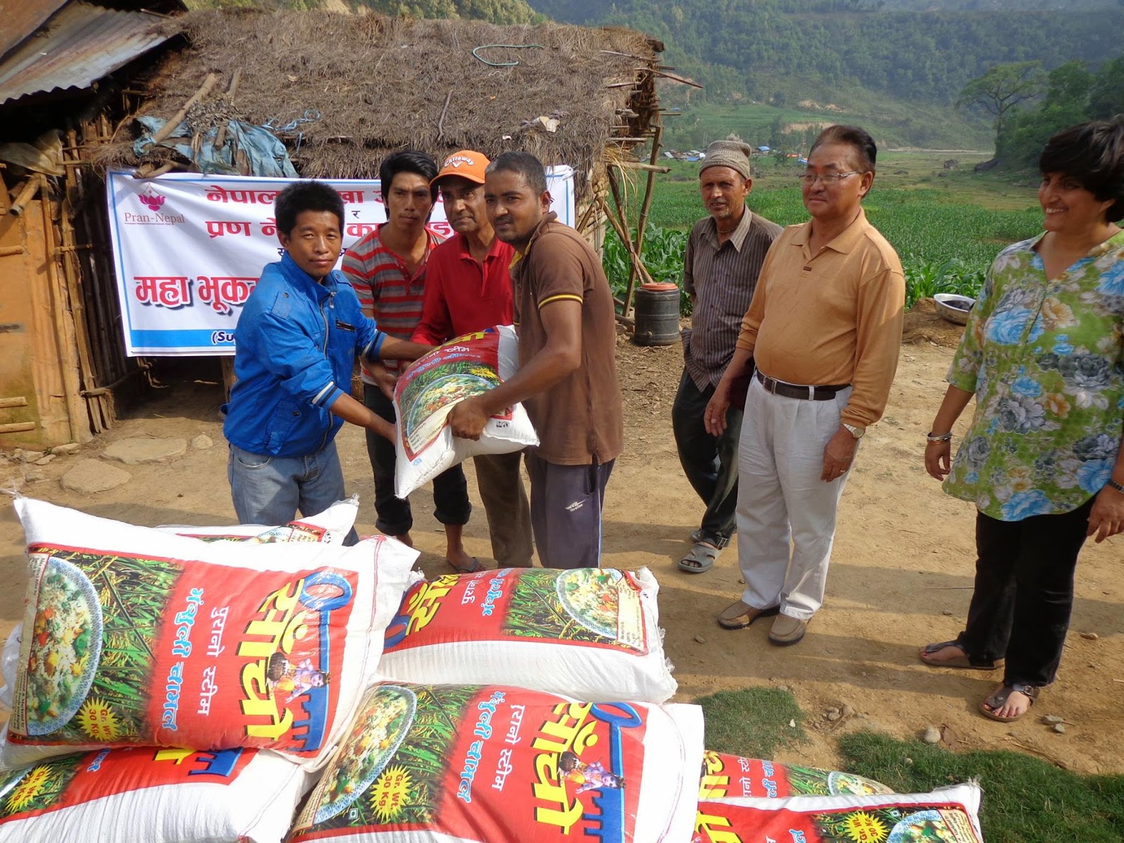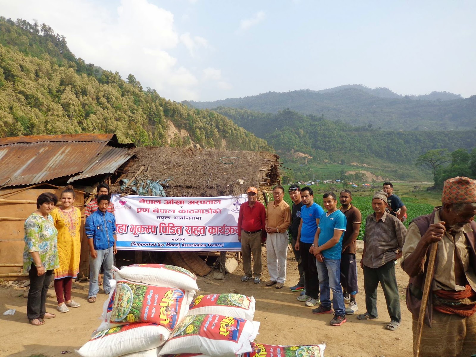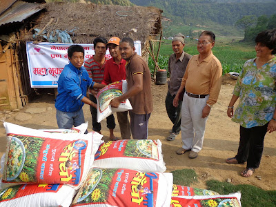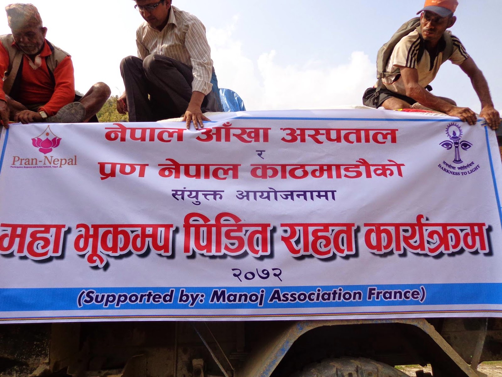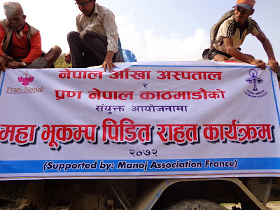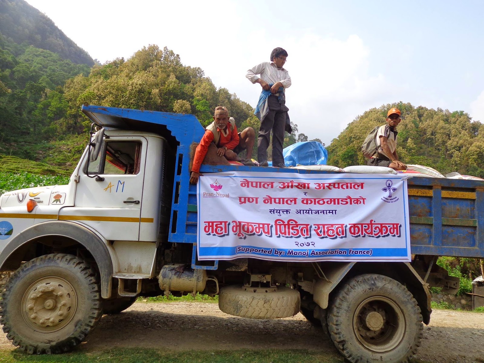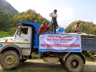 | Le deuxième camion de riz et bâches. En collaboration avec le Nepal Eyes Hospital et l’association PRAN NEPAL |