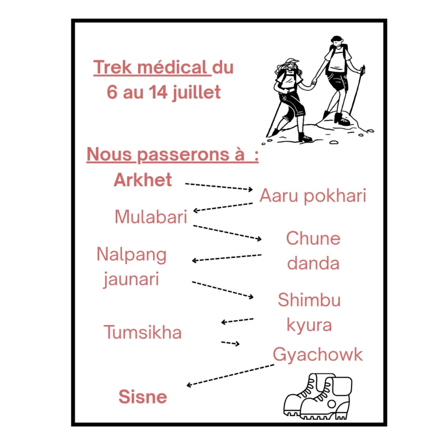 2025 ne fait pas exception à la règle, une équipe est donc en ce moment même en direction du Népal. Au programme : achat et distribution de matériel médical, trek médical, distribution de protections hygiéniques, financement d’assurances maladies familiales, stage dans le centre de santé de Bachchek, participation à un camp de santé de médecine générale, cardiaque et gynécologique et enfin participation à un camp de santé dentaire… rien que ça !