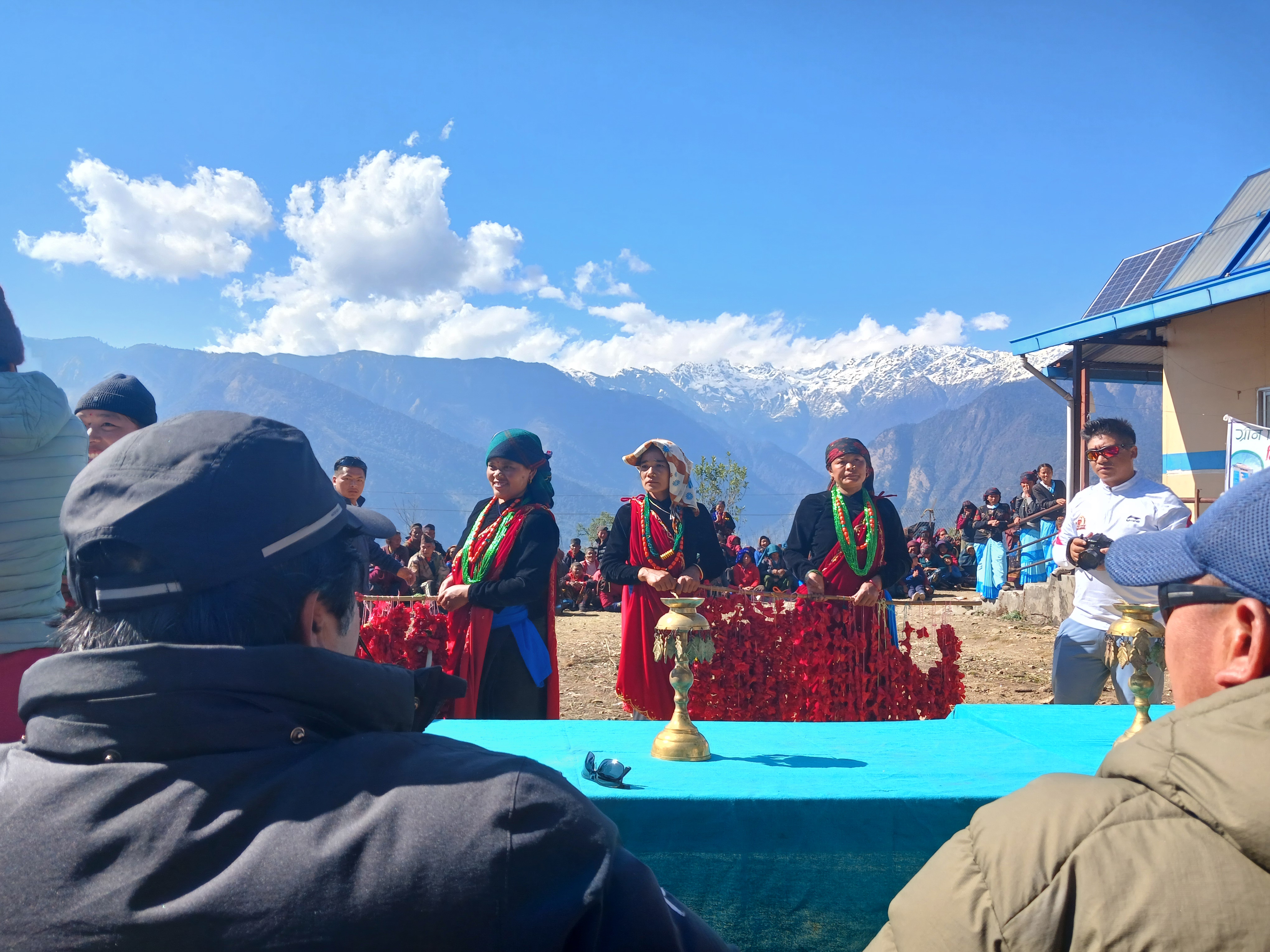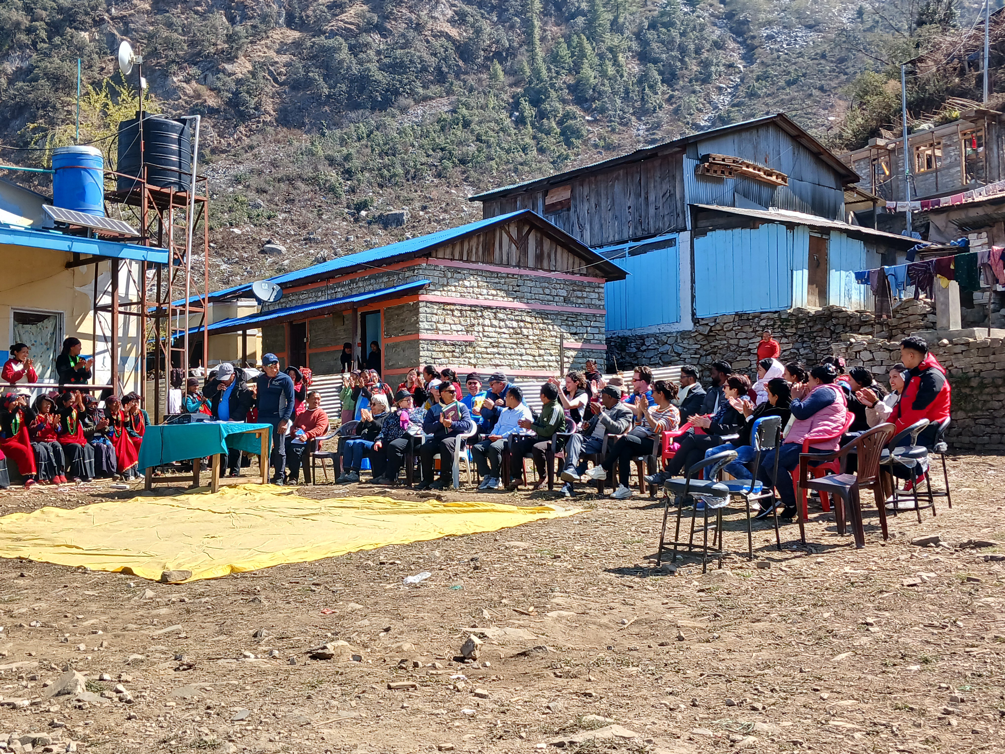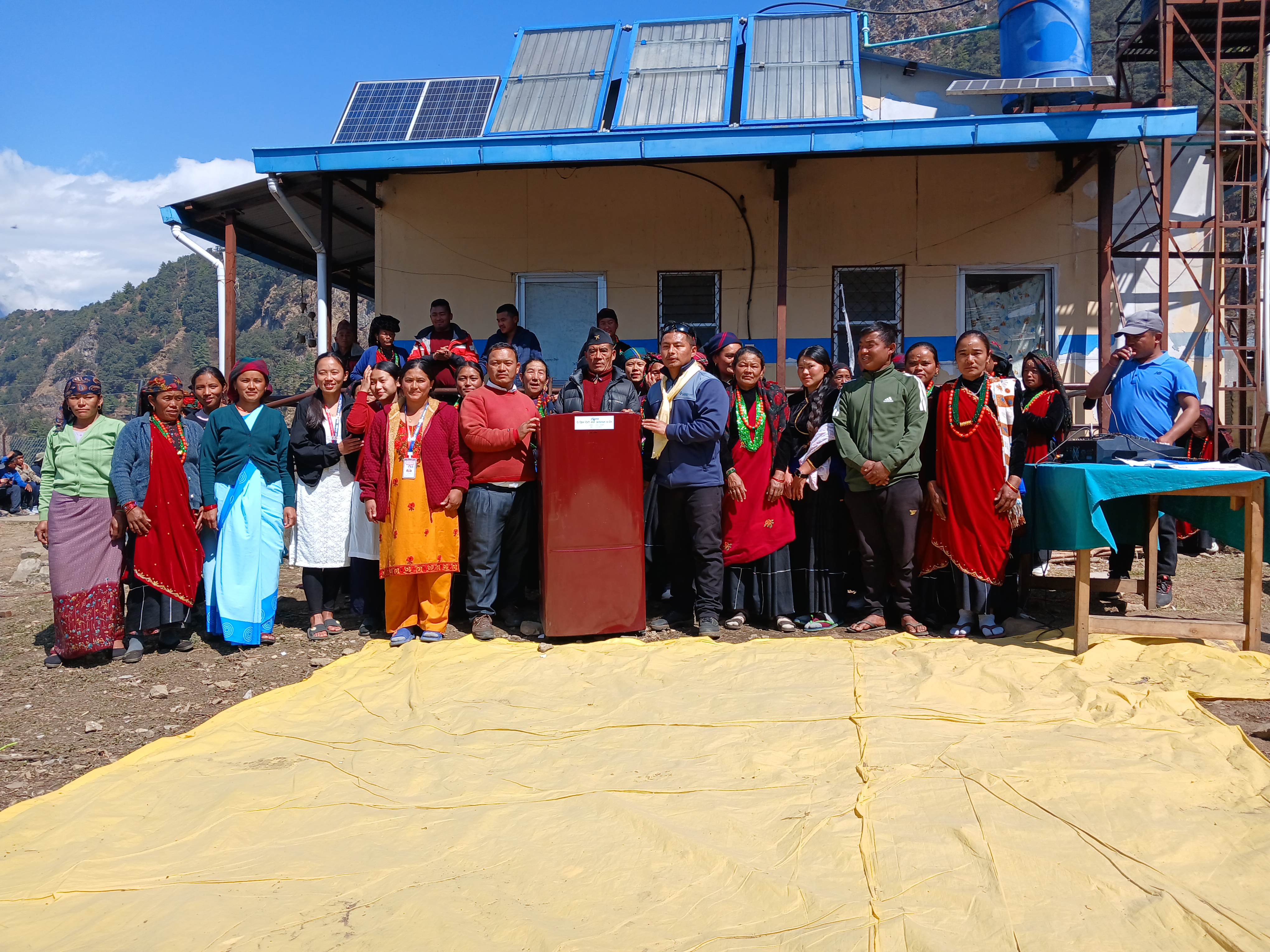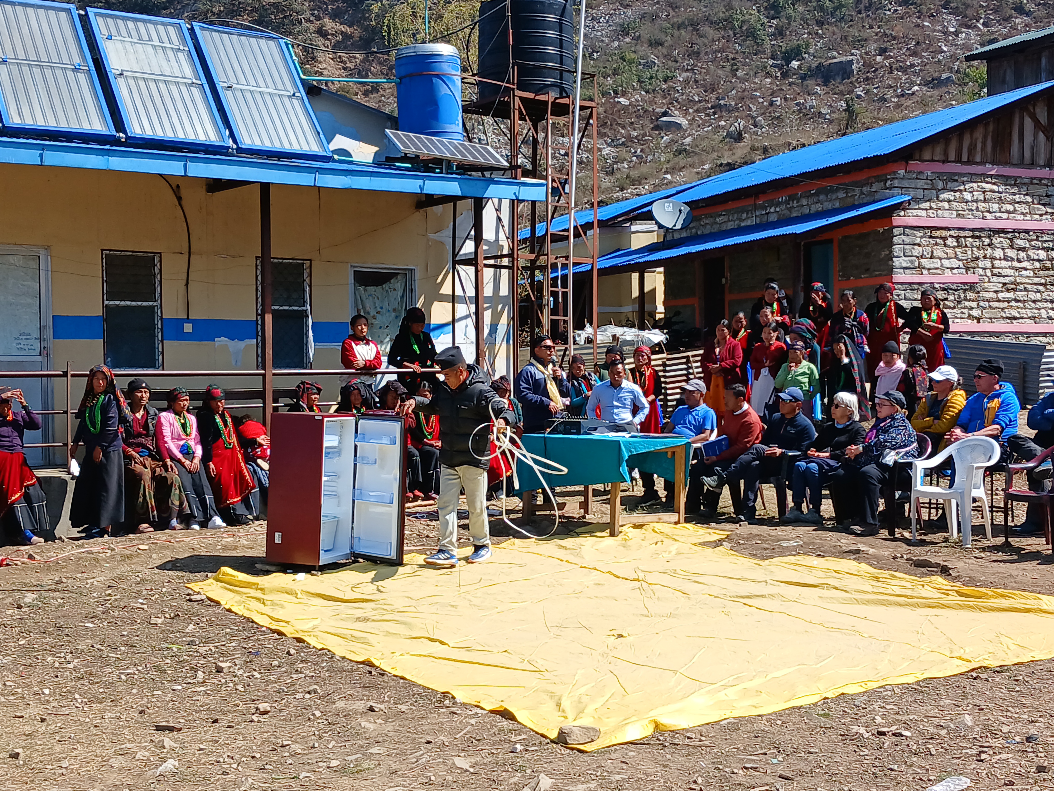 La journée du 4 mars a débuté par la traditionnelle cérémonie de clôture du camp de santé. Au programme : danses traditionnelles Gurung, discours… discours… discours et photos ! Pour l’occasion, un frigo a été offert au dispensaire (afin de conserver les vaccins notamment).