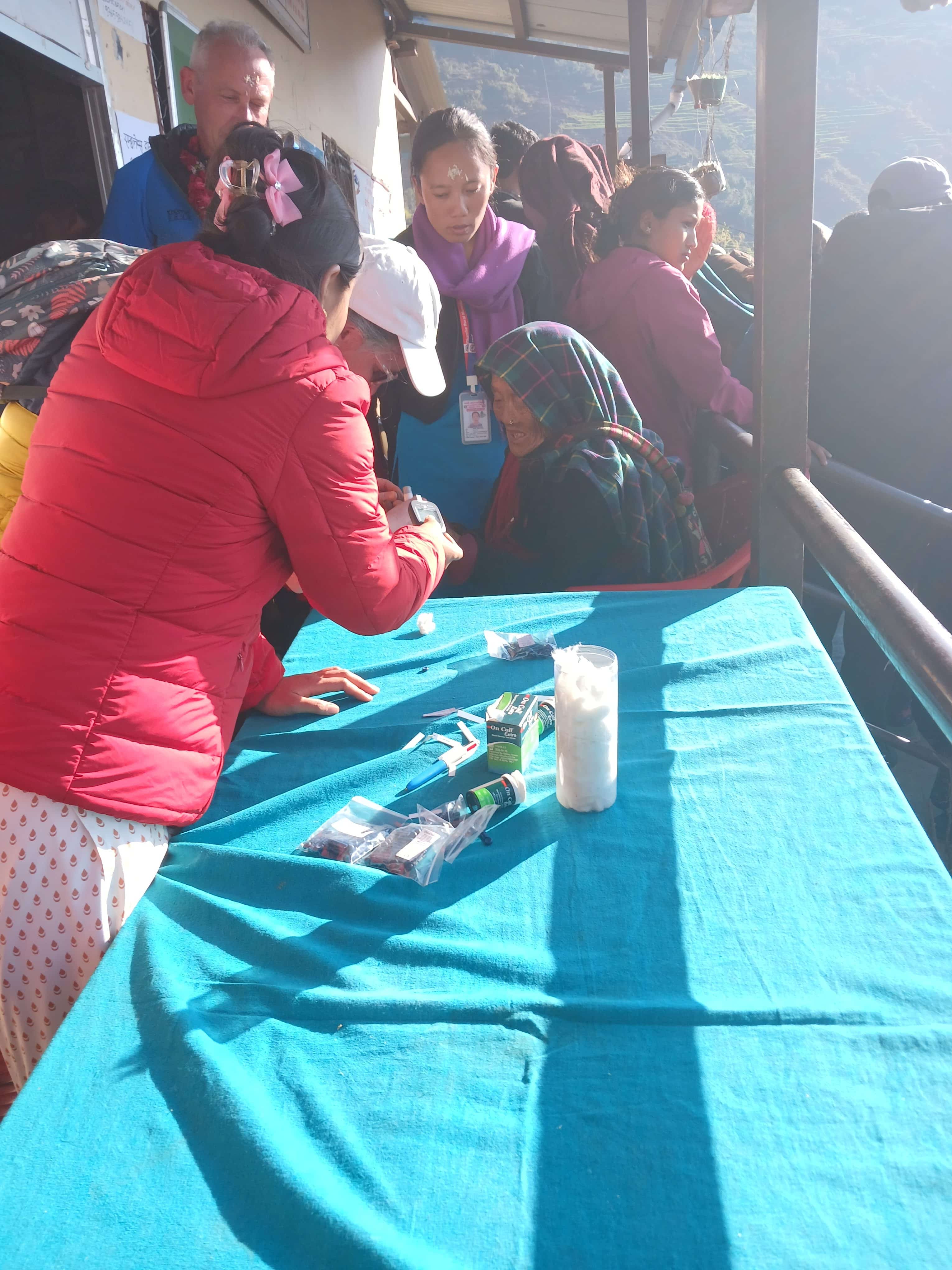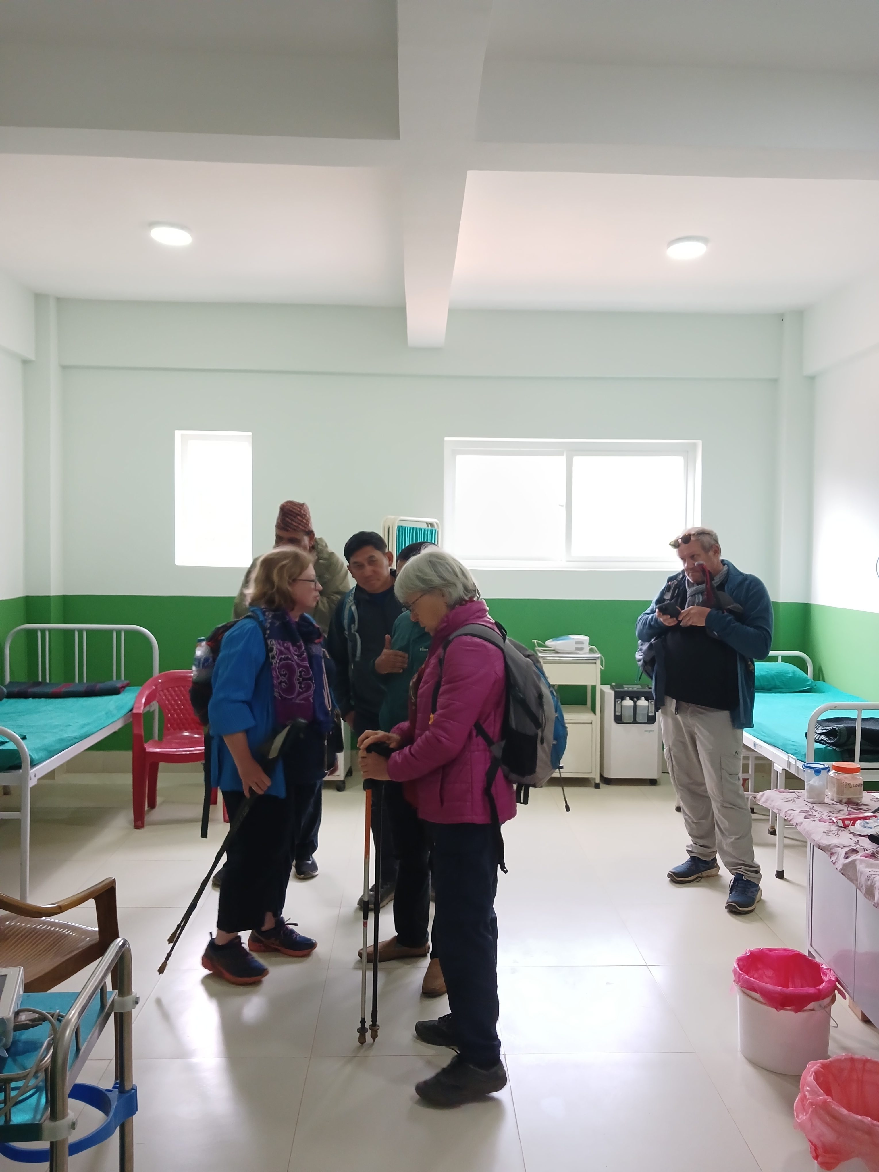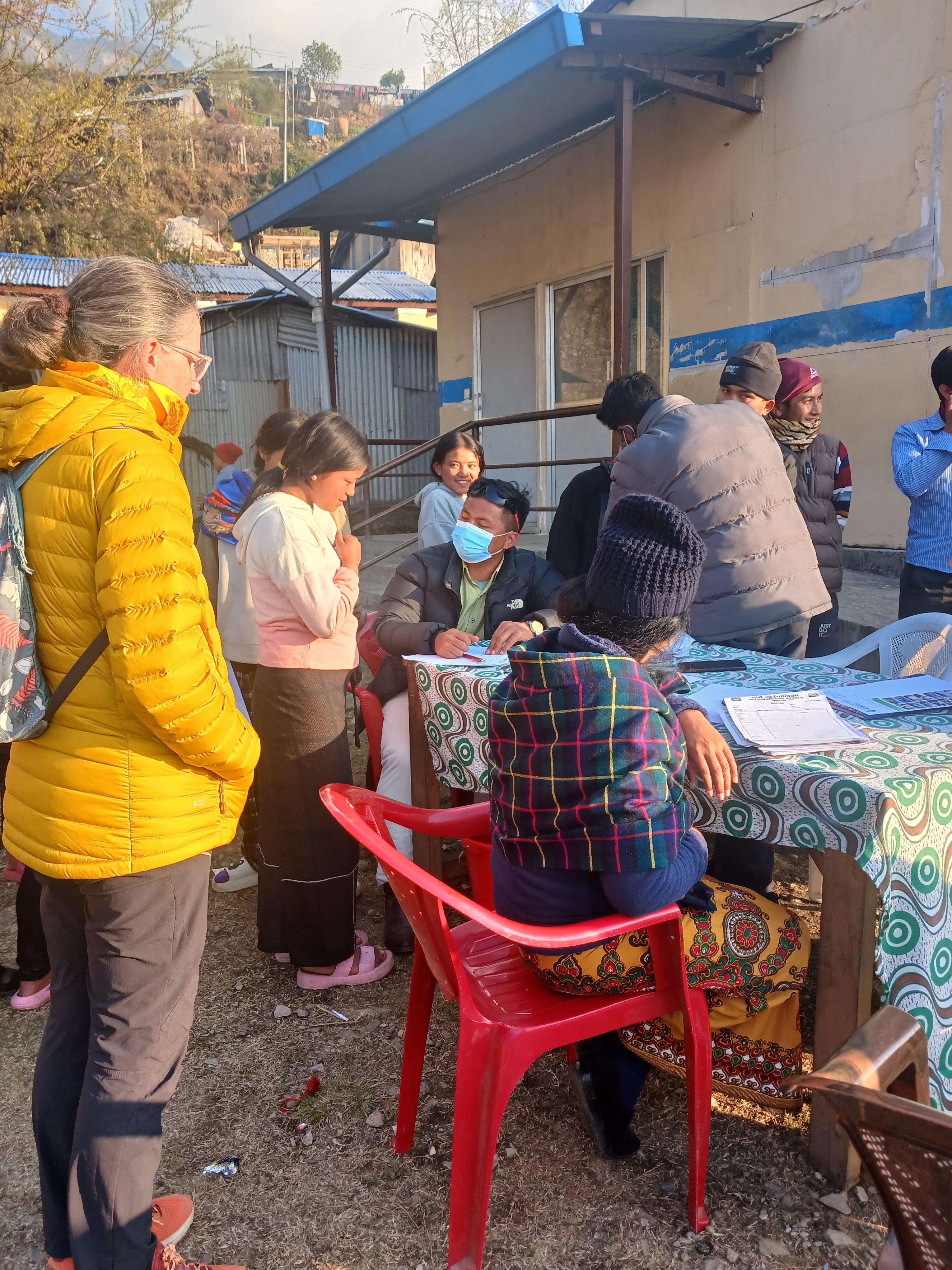 Nous avons été interpellés par un homme âgé qui avait un gros goître (une masse au niveau de la gorge). Nous l’avons interrogé mais il ne souhaite pas se rendre à Kathmandou pour une prise en charge. L’équipe du dispensaire nous parle également d’une jeune mère allitée qui ne peut plus se déplacer. Elle a reçu des consignes du dispensaire, nous ne pouvons donc pas intervenir et nous substituer aux soignants locaux. La situation était frustrante.