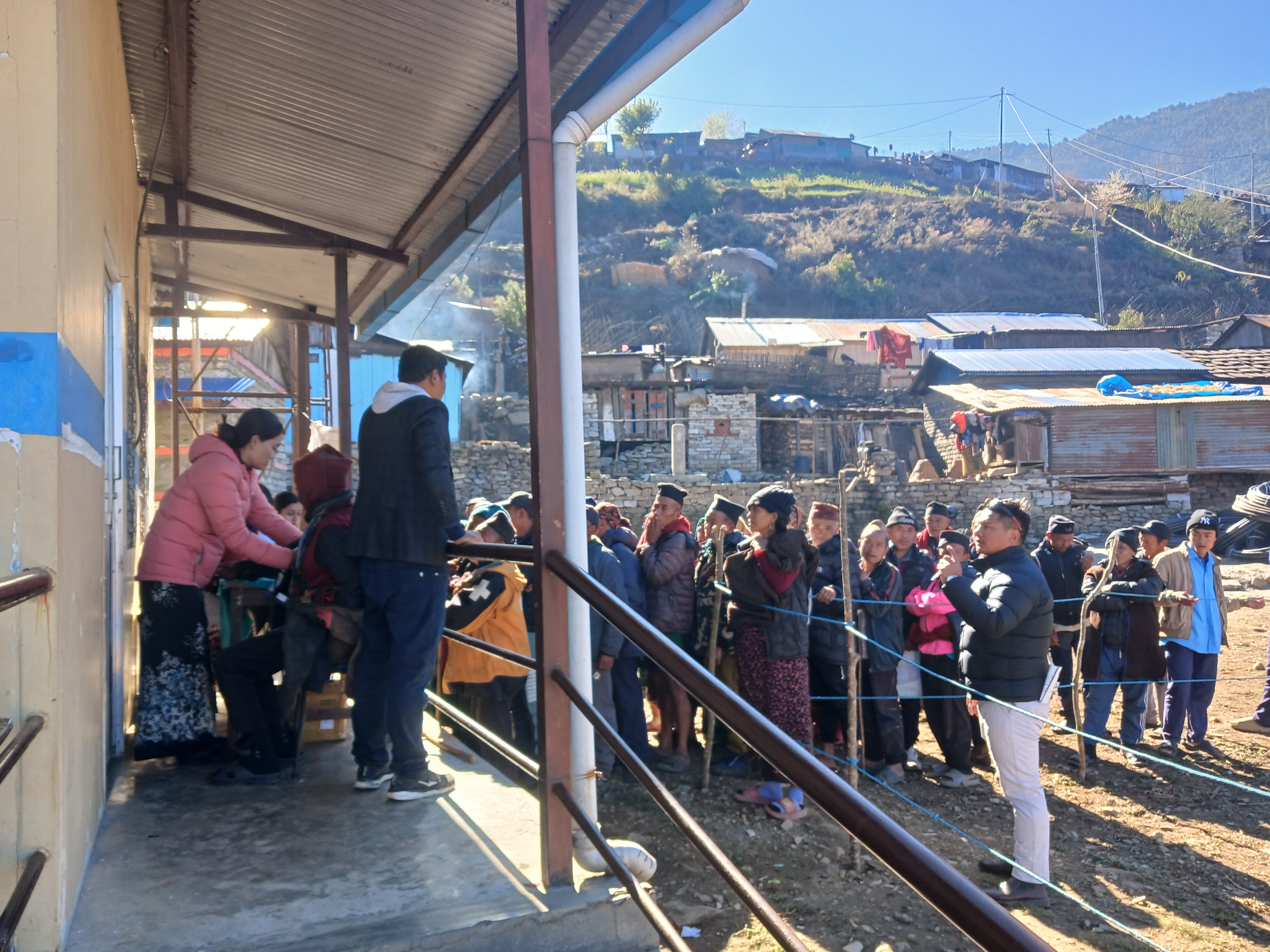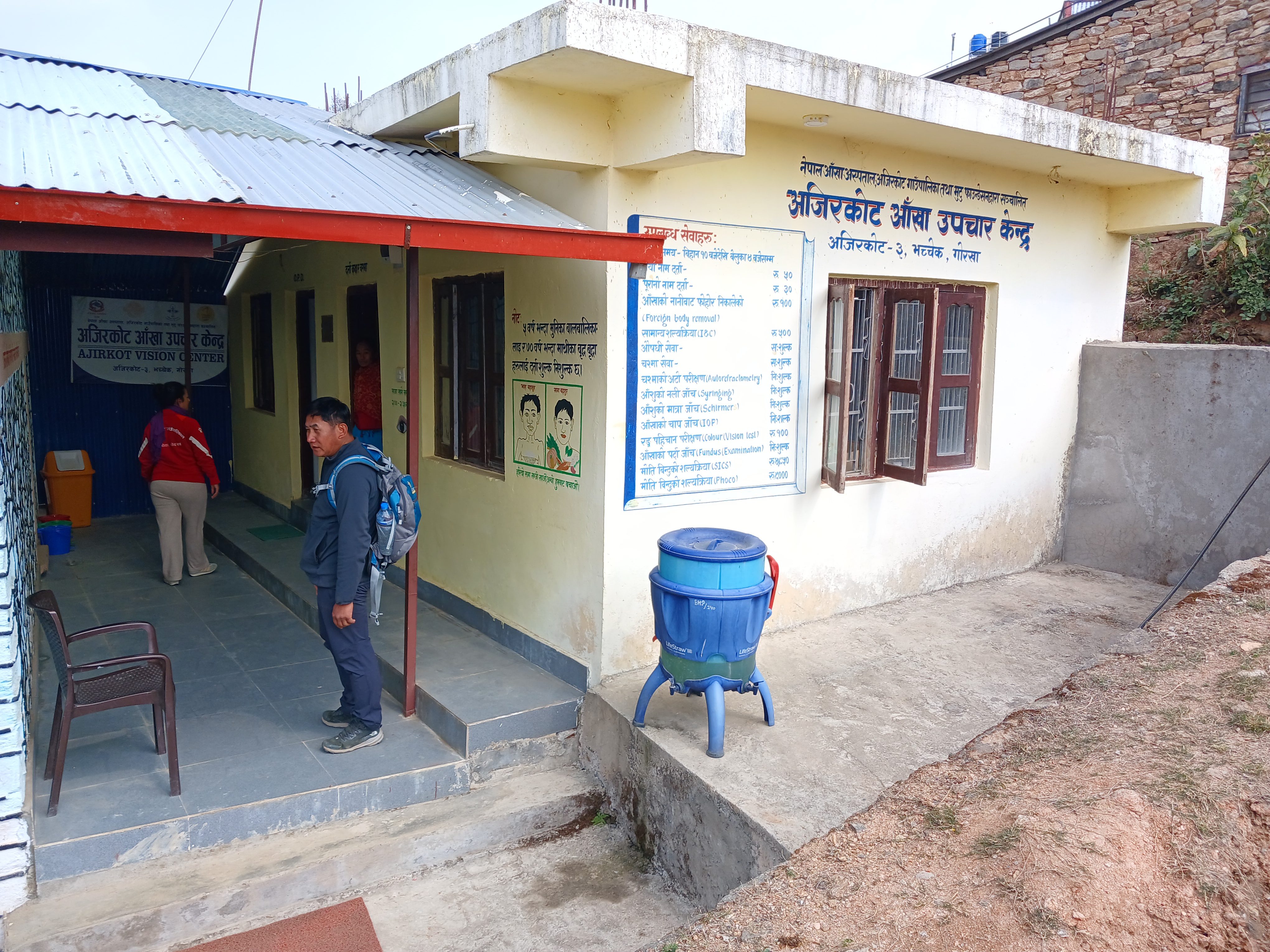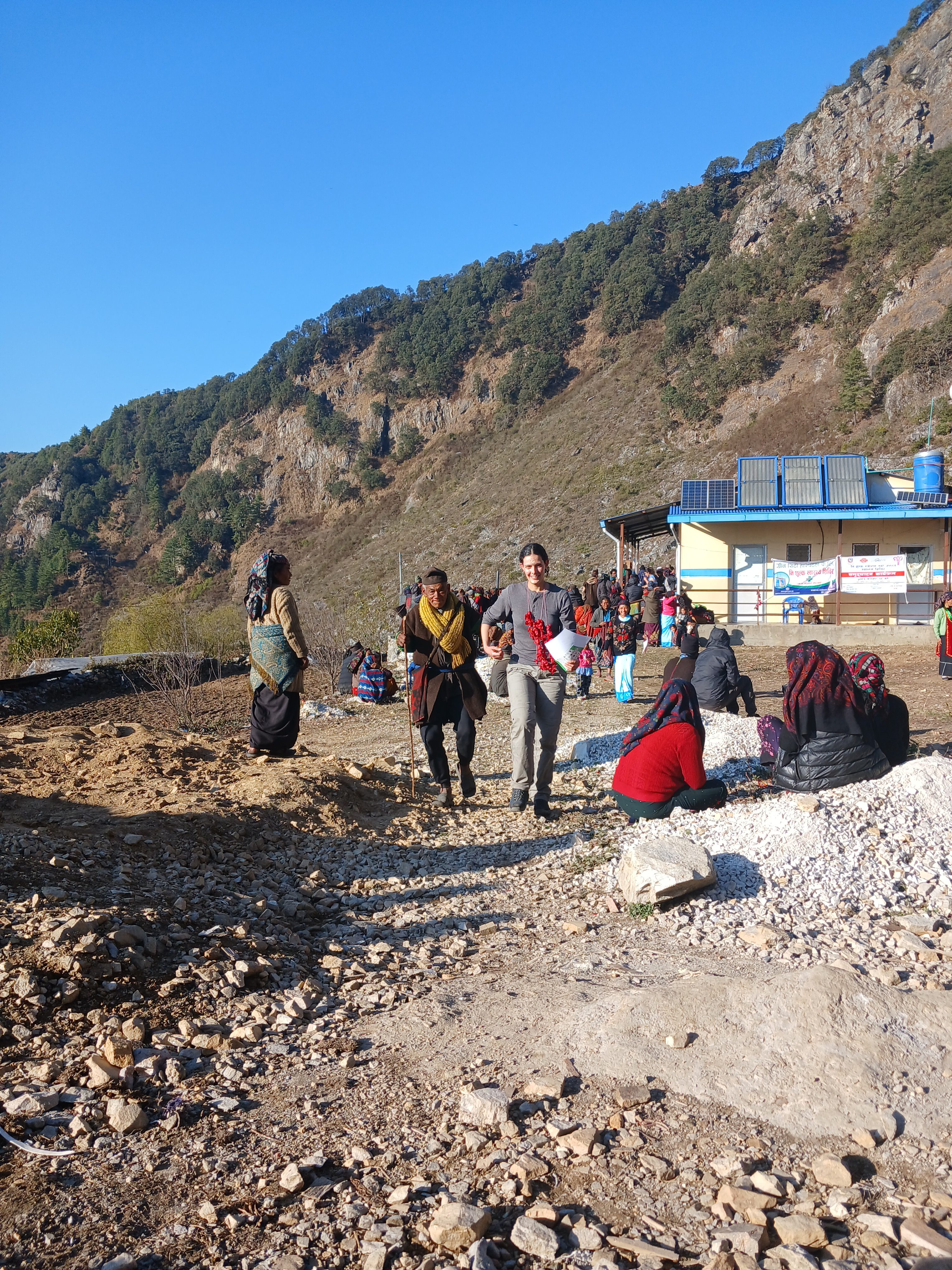 Le 7 mars nous avons marché de Goumda à Laprak (le nouveau village situé en hauteur, construit suite au tremblement de terre). Nous avons visité le nouveau dispensaire (Health Post – municipalité de Dharche) inauguré en juillet 2024. Nous avons été accueillis par une infirmière également sage-femme.