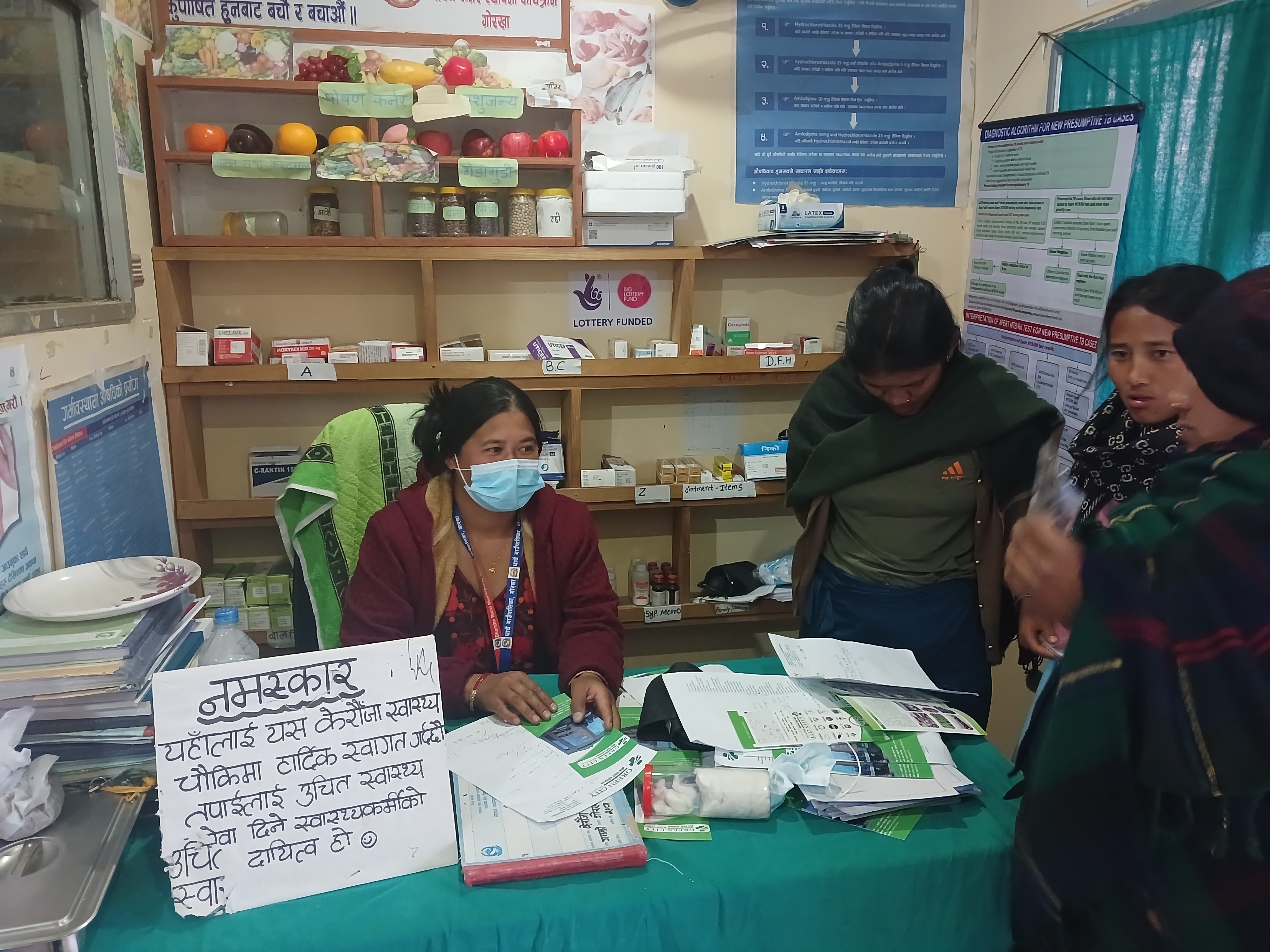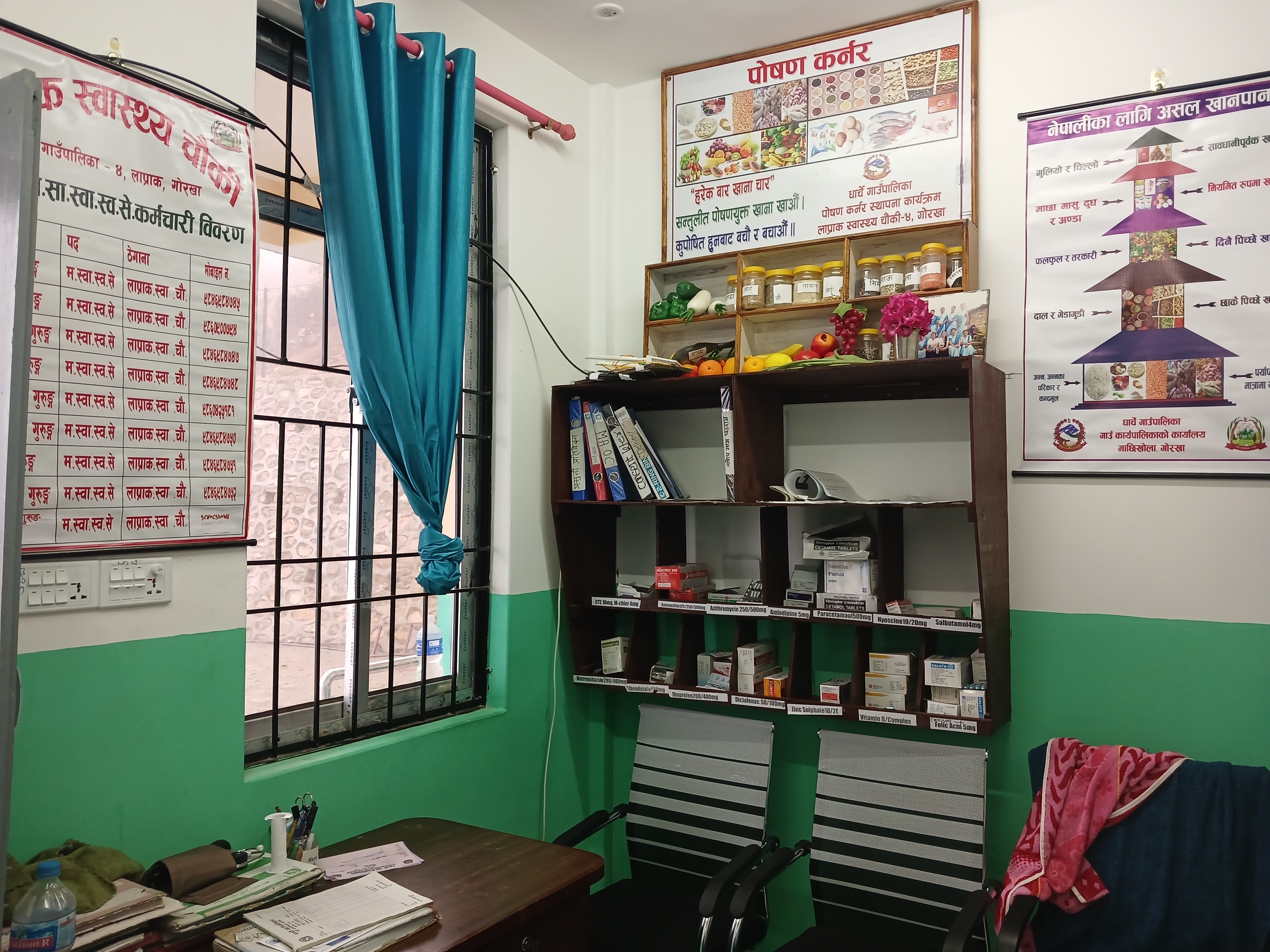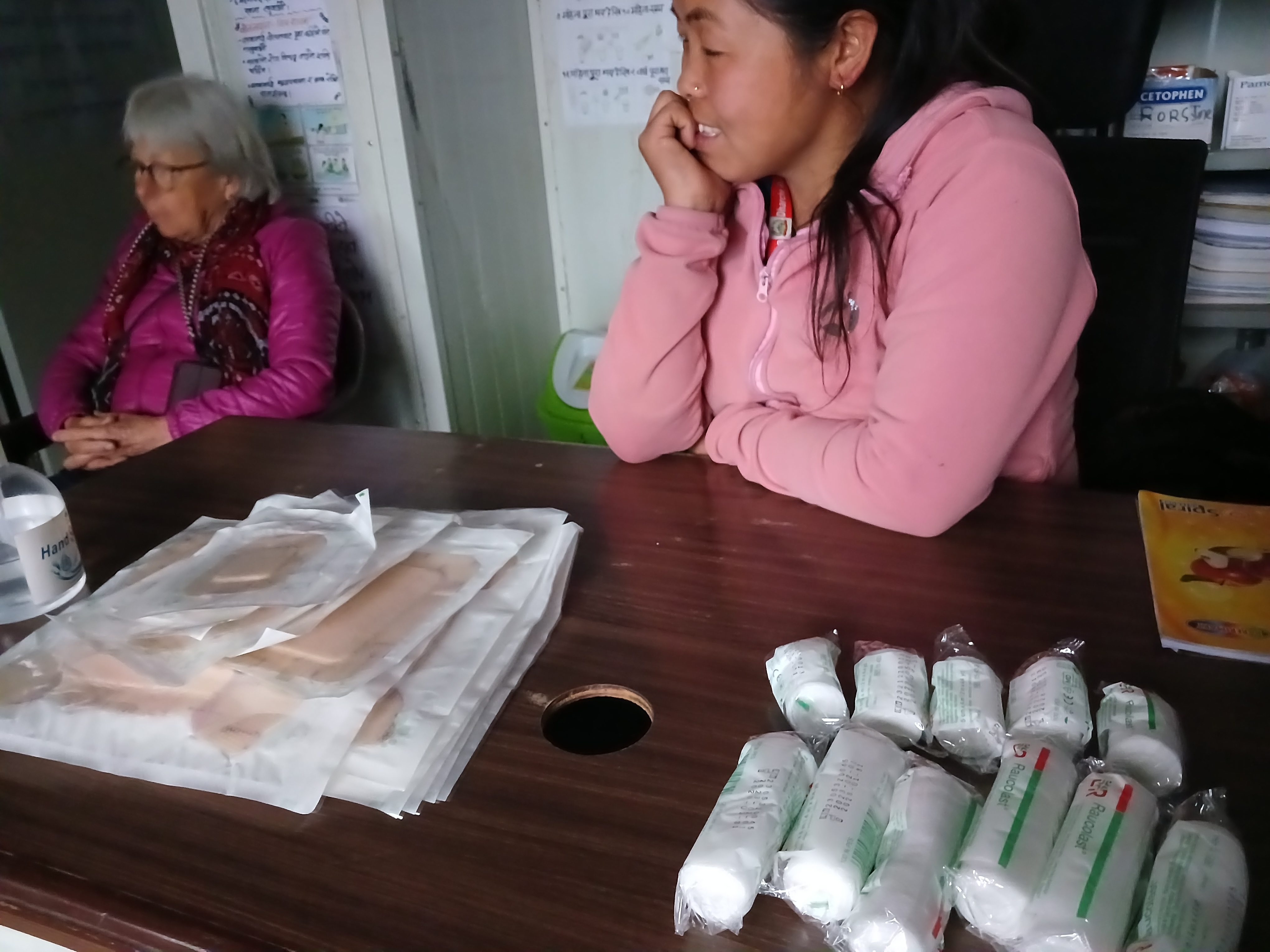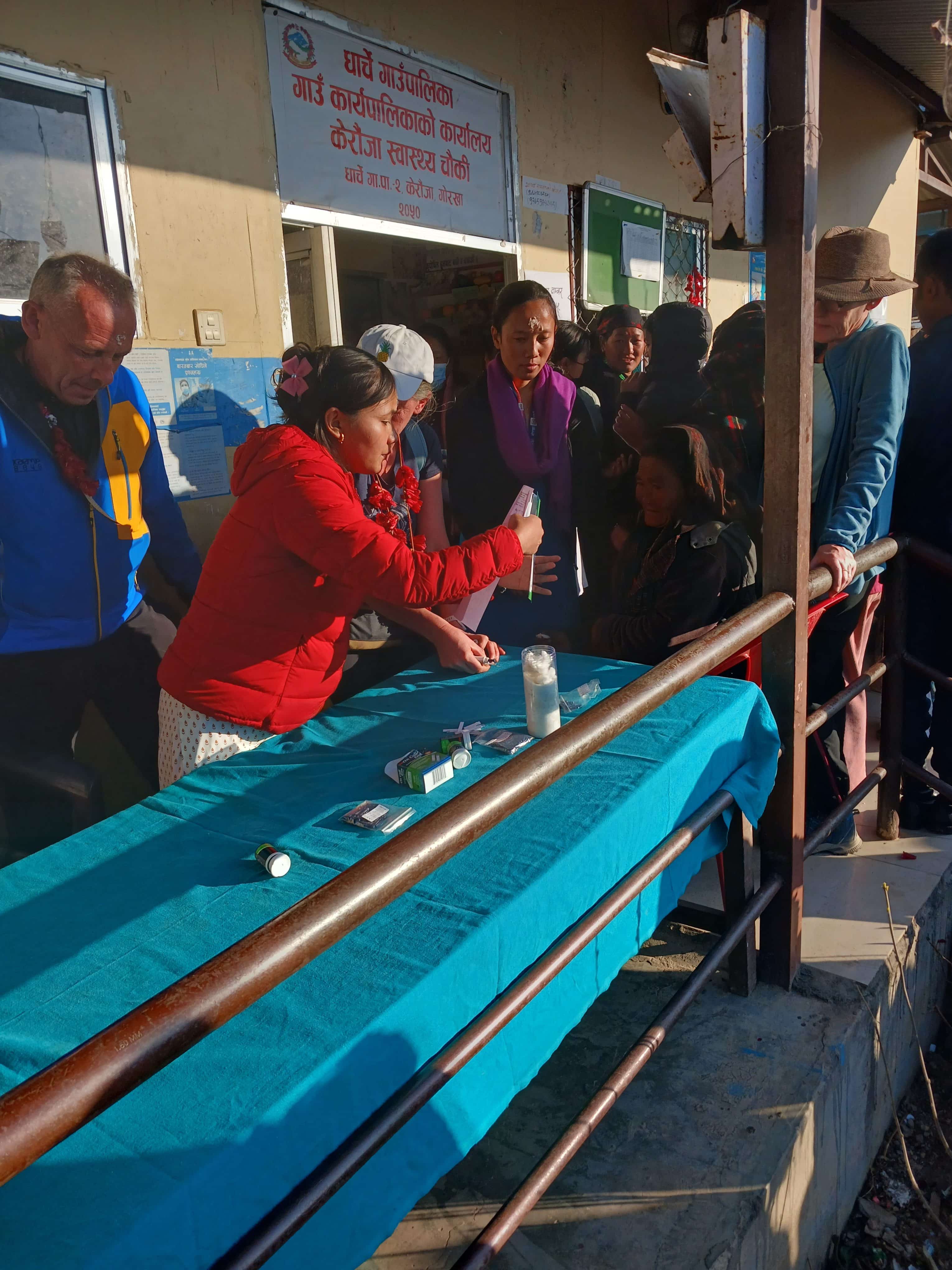 L’équipe de 7 personnes travaillant ici reçoit environ 10 patients par jour. 12 naissances ont eu lieu en 2024 et les cas problématiques sont également envoyés à Gorkha. N’ayant pas d’échographe, l’infirmière (Ulmila) qui se déplace avec son appareil de villages en villages dans la municipalité de Dharche, vient jusqu’à Laprak à pied ou en moto, en fonction des conditions. Les affections les plus fréquentes sont l’asthme et l’hypertension. En termes de besoins, il manque à l’équipe des bouteilles d’oxygène.