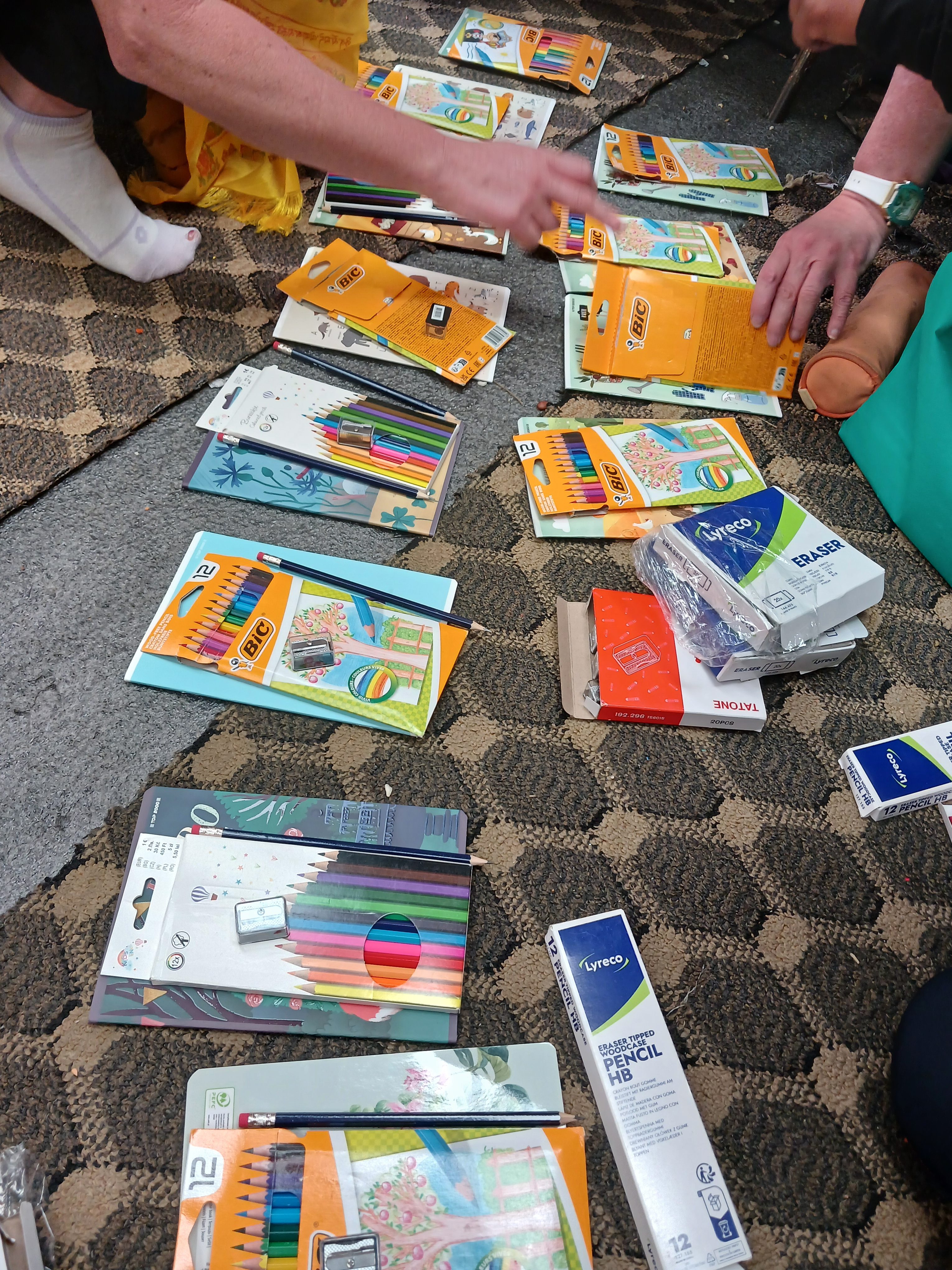 Les membres de la team ont également tous apporté des fournitures scolaires, des vêtements (dont certains tricotés à la main avec amour !), des peluches et des jouets pour enfants. Nous avons réparti tout le matériel dans des grands sacs qui viennent s’ajouter aux sacs à dos. Nous sommes bien chargés ! Demain nous partirons dans deux 4×4 (l’équipe du Green Hospital prendra également deux 4×4) en direction de Keraunja. Une petite nuit de sommeil attend la team, départ prévu à 7h le 1er mars.