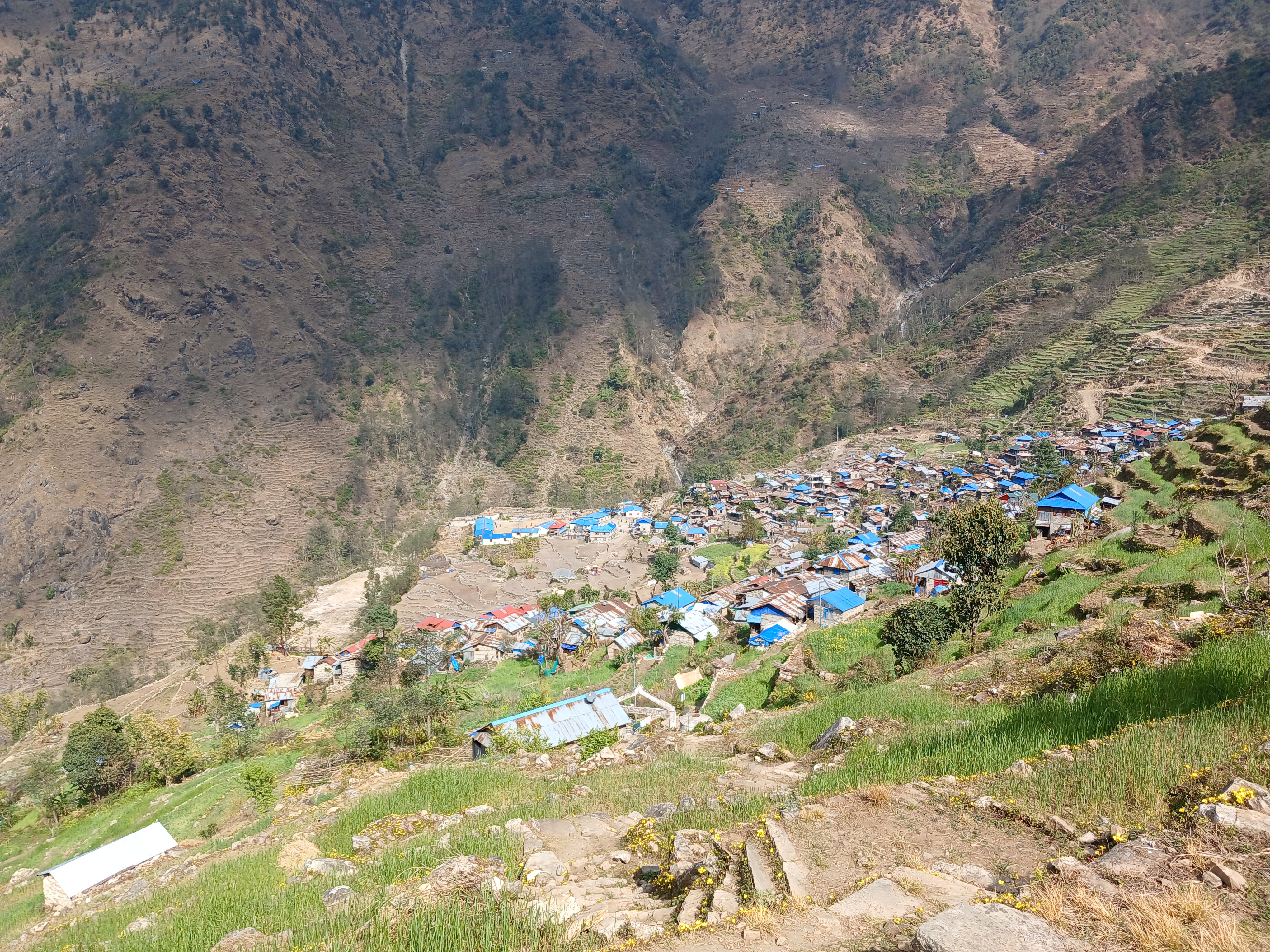 Le 8 mars nous avons marché de Laprak à Barpak. Étant donné qu’il s’agit d’un samedi, le dispensaire de Barpak (municipalité de Solikhot) était fermé. Nous en avons donc profité pour visiter la ville.