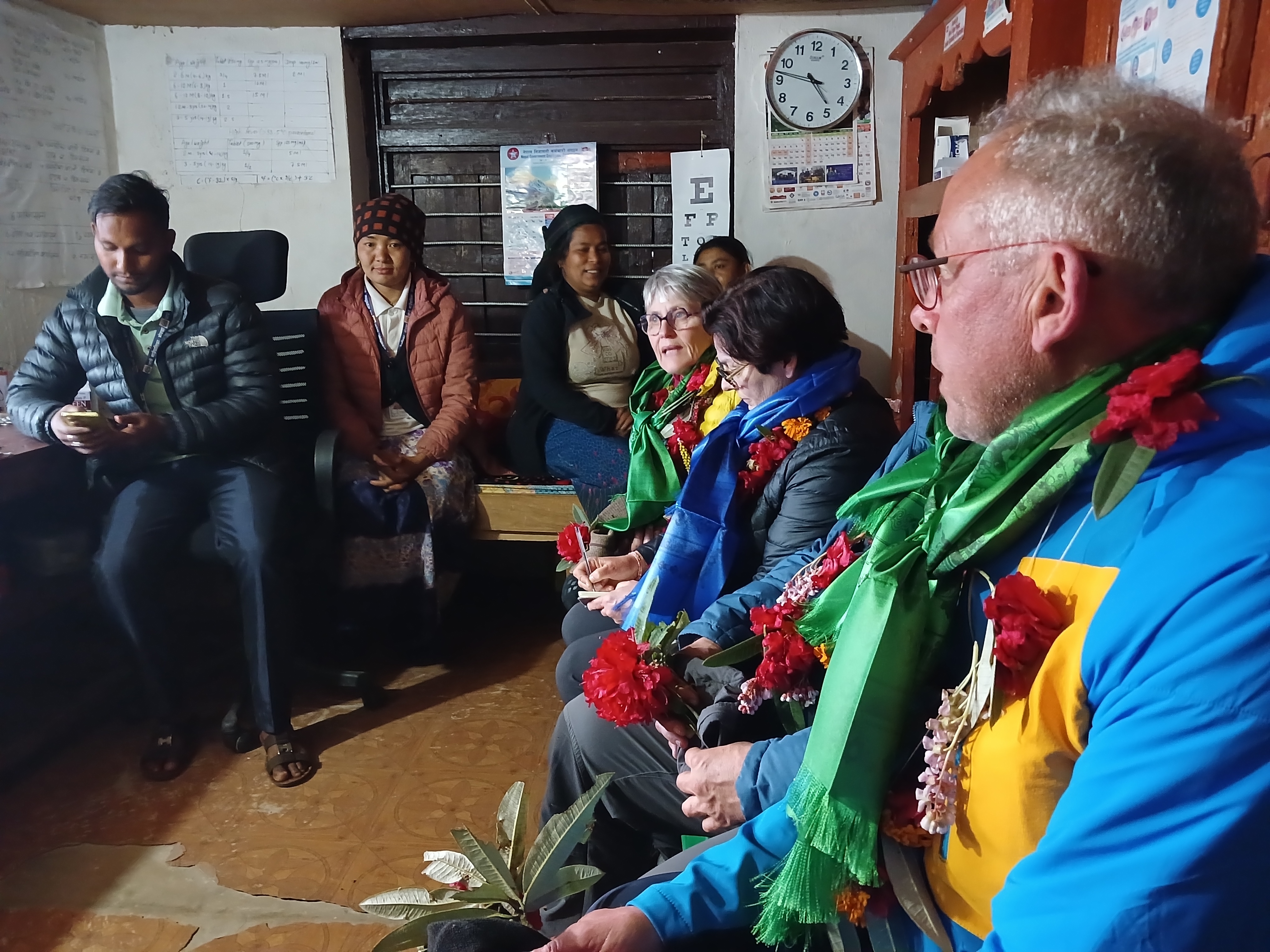 Puis, au retour du lodge, nous avons rencontré le maire et une discussion s’est engagée entre lui, Dhan et le président des affaires médicales au sujet de l’organisation possible de futurs camps de santé.