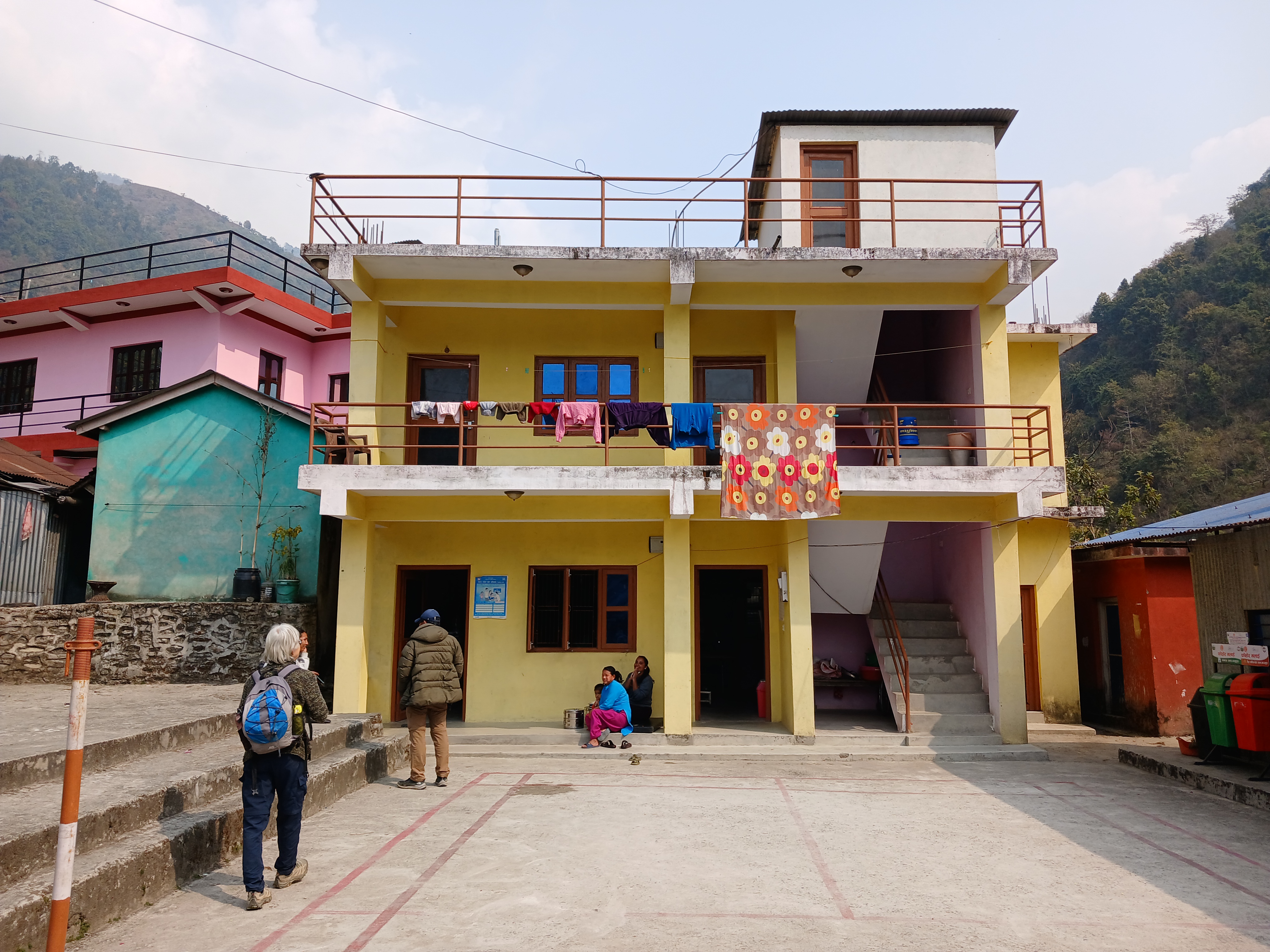Le 6 mars nous avons marché de Khorlabesi jusqu’à Machhikhola (ou Machhakhola 😉) (ward 5, municipalité de Dharche). Après le repas, nous avons visité le dispensaire.