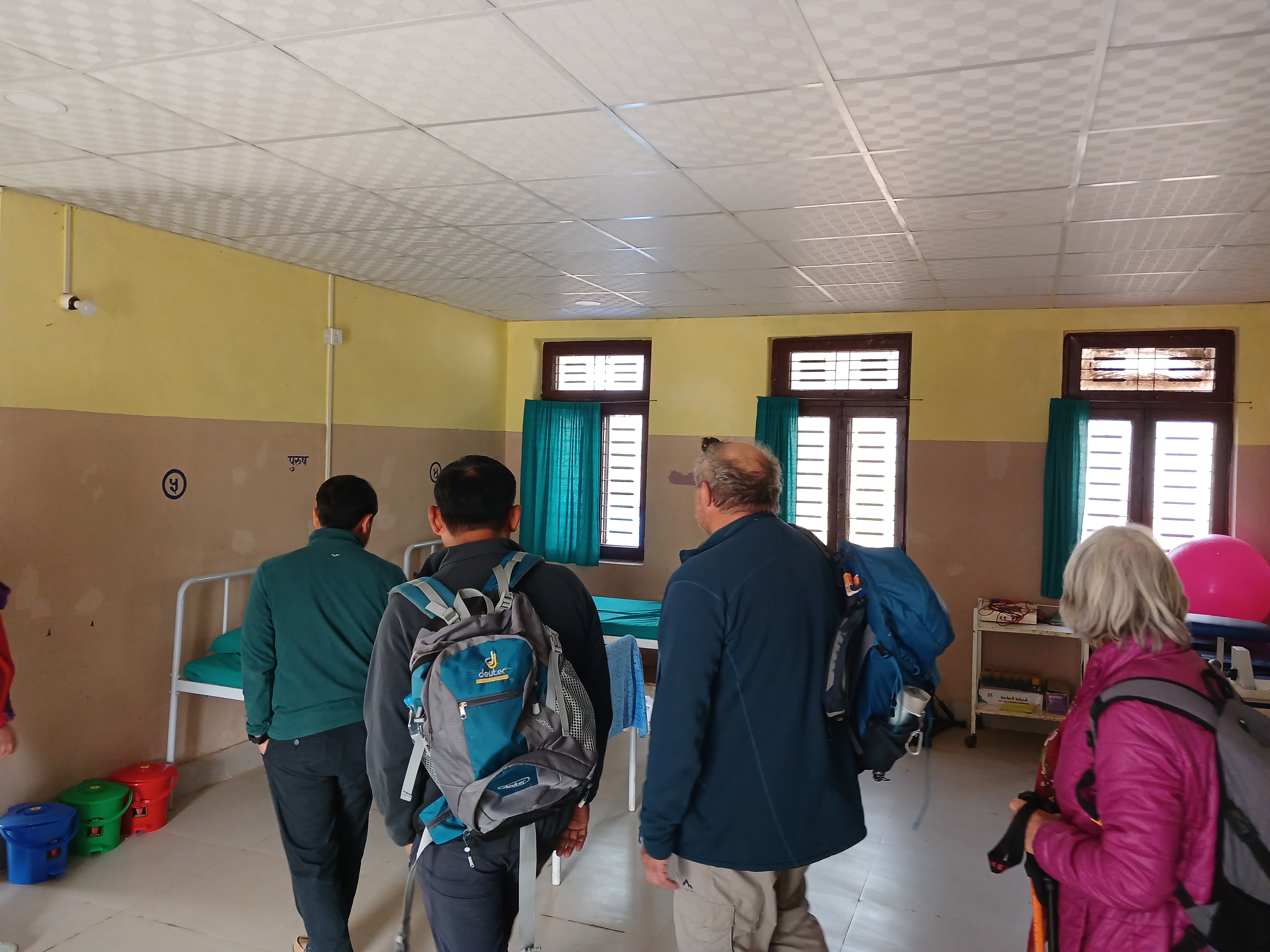 Nous avons ensuite marché de Runchet à Khorlabesi, puis avons visité le Darche Community Hospital (basic hospital) en compagnie d’un des médecins du centre et du directeur des affaires médicales de la municipalité (qui était aussi présent sur le camp de santé de Keraunja). Il s’agit de l’hôpital de référence des environs, situé à 5h de Gorkha (durant la saison sèche). Il a ouvert 3 mois auparavant et a été construit grâce à des financements de la municipalité d’une association suisse. Nous avons visité les différentes salles de l’hôpital : les salles d’urgence, la maternité, le bloc opératoire, la salle de radio, le laboratoire et le cabinet dentaire (200 patients sont venus en 3 mois). Les médecins habitent sur place.