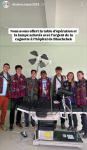 Les dons qu’ils ont récoltés en France (par la vente de gâteaux, l’organisation d’une soirée karaoké, d’une tombola, etc.) leur permettent de mener de nombreuses actions au Népal (camps de santé, distribution de protections féminines, souscription d’assurances santé, etc…).