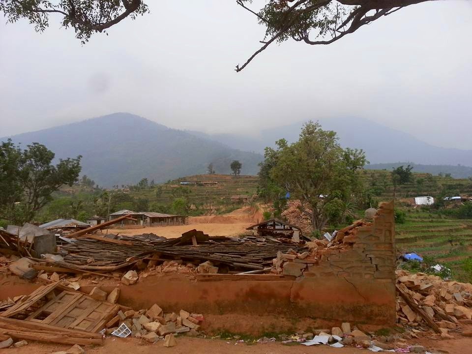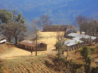 Dhan remet l’argent de l’association entre les mains du président du VDC ( communauté de commune ) accompagné de son assistant et en présence du chef militaire local.