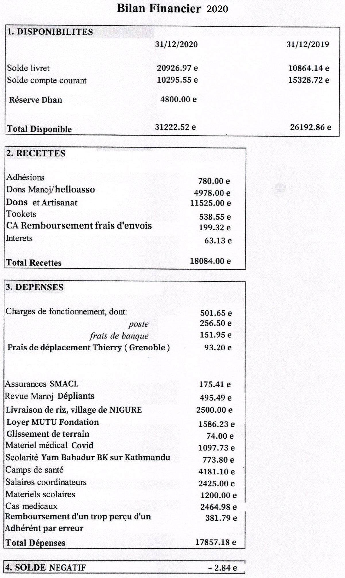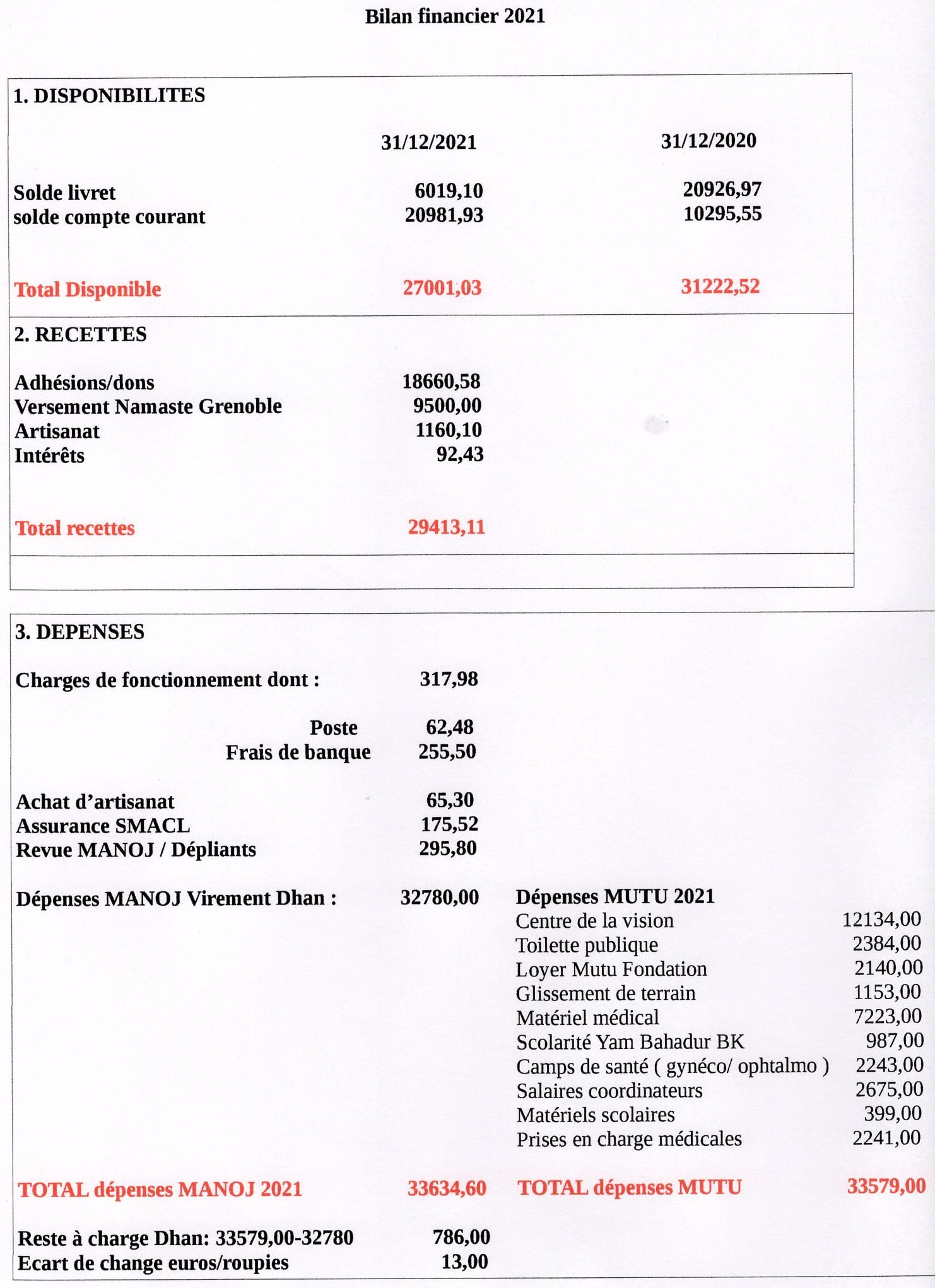 Bilans financiers 2020 et 2021 :