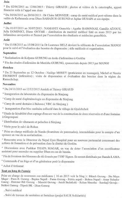 Nanda : Jeune fille détectée par le Dr Claire MONNIER durant son séjour en juin 2015: Aide médicale par un apport de France de pommades dermatologiques afin de soigner une maladie cutané entravant sa scolarité. Prise en charge scolaire ( sponsoring ) par l’intermédiaire d’une association française partenaire à MANOJ: AVENIR NEPAL.